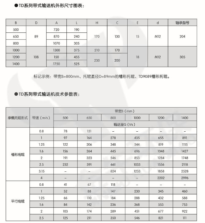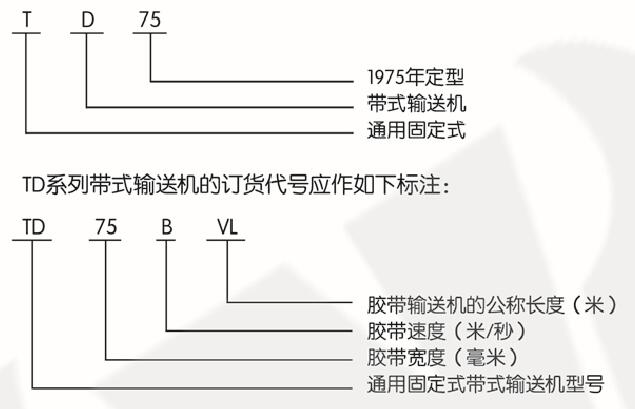 TD系列带式输送机产品代号及订货代号: